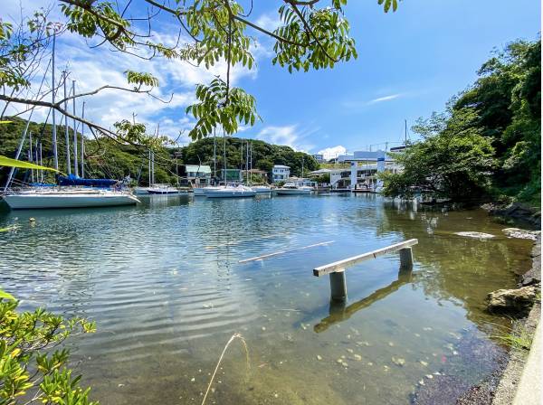 湾の奥に至るまでに地形が何段階か折れ曲がっており、外海のうねりが到達しない静かで穏やかな【油壷湾】