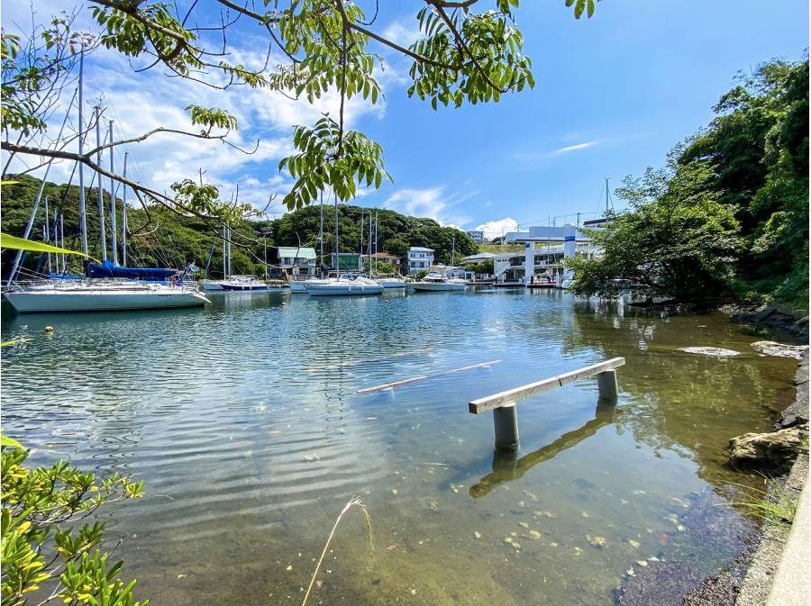 油壷湾は地形の特性から外海の荒波が届きにくいため、常に穏やかな海を見ることができます。周囲の岬とそこに生い茂る林が風を防ぎ、水面が穏やかに保たれるため、天然の良港となっています。
