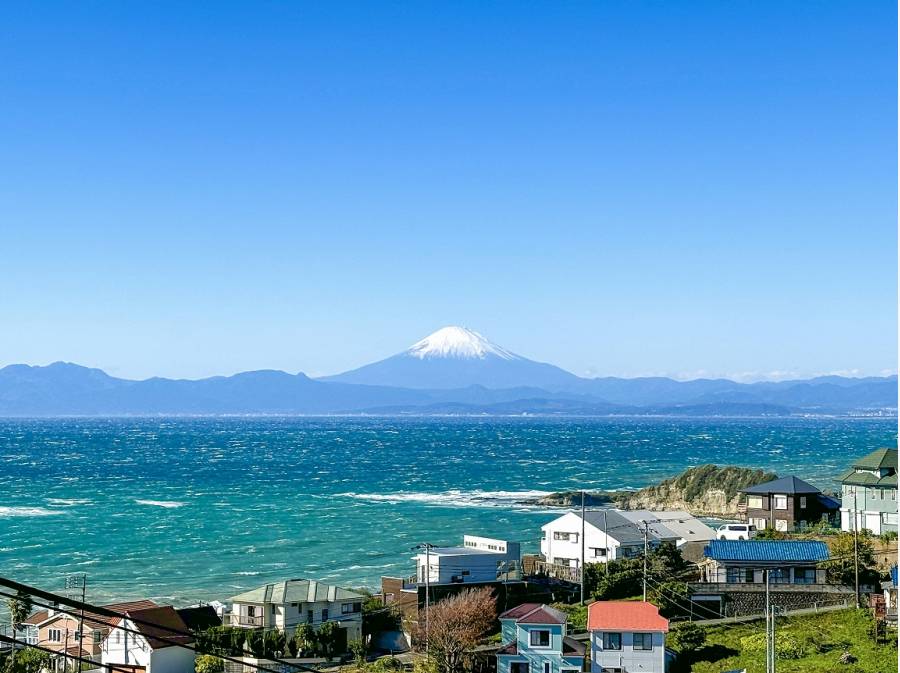 遮ることなく広がる蒼い海や富士山、そして山の緑を望めるなんとも贅沢なロケーションに佇む邸宅です。