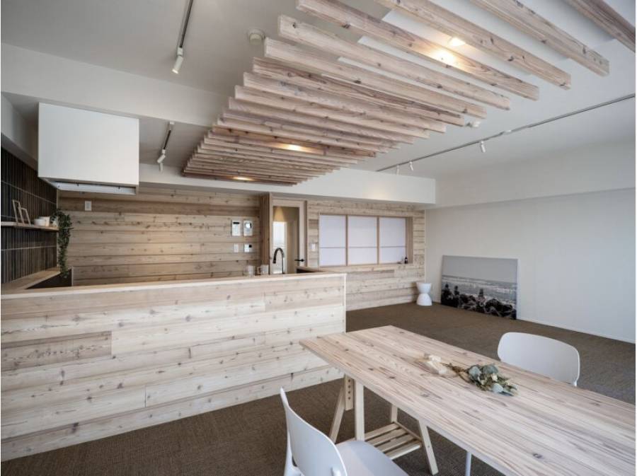 フルリノベーションされた室内は、素材の温もりと開放感が調和した空間に仕上がっています。