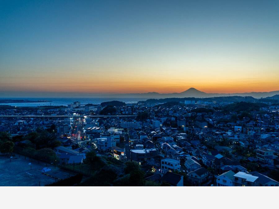 近くには三浦半島の穏やかな山並み、足元にはジオラマのように輝く街並みが広がり、視線を移すたびに異なる表情を見せるパノラマビューが楽しめます。