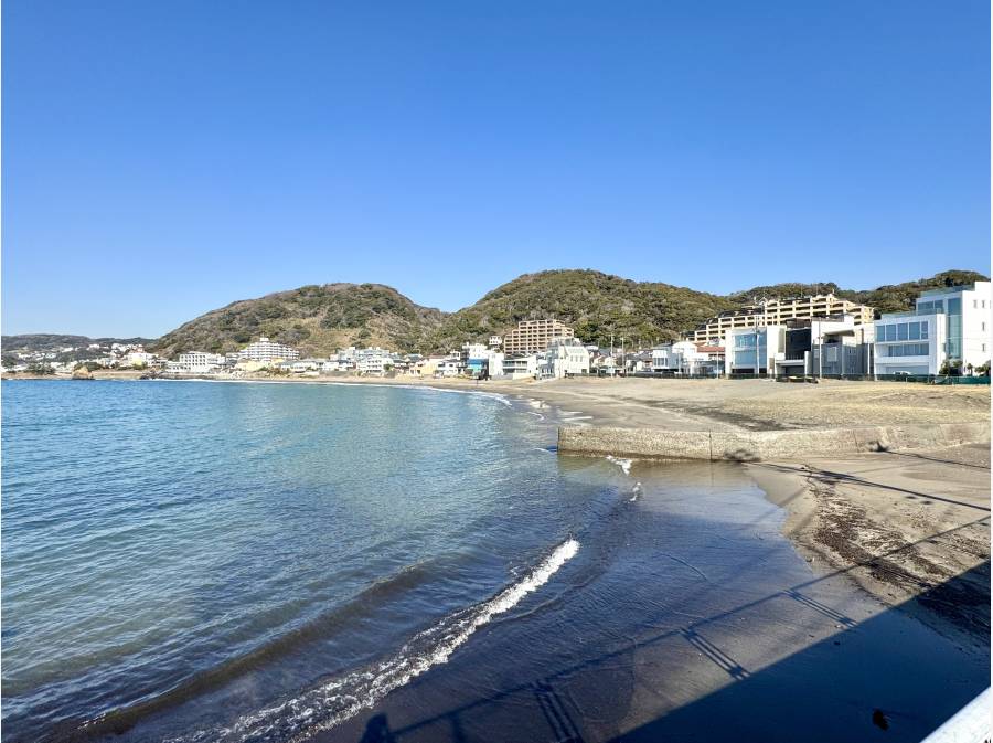 物件から秋谷海岸まではわずか徒歩2分。(約200m)物件の2階からもチョロっと海が望めちゃいます。