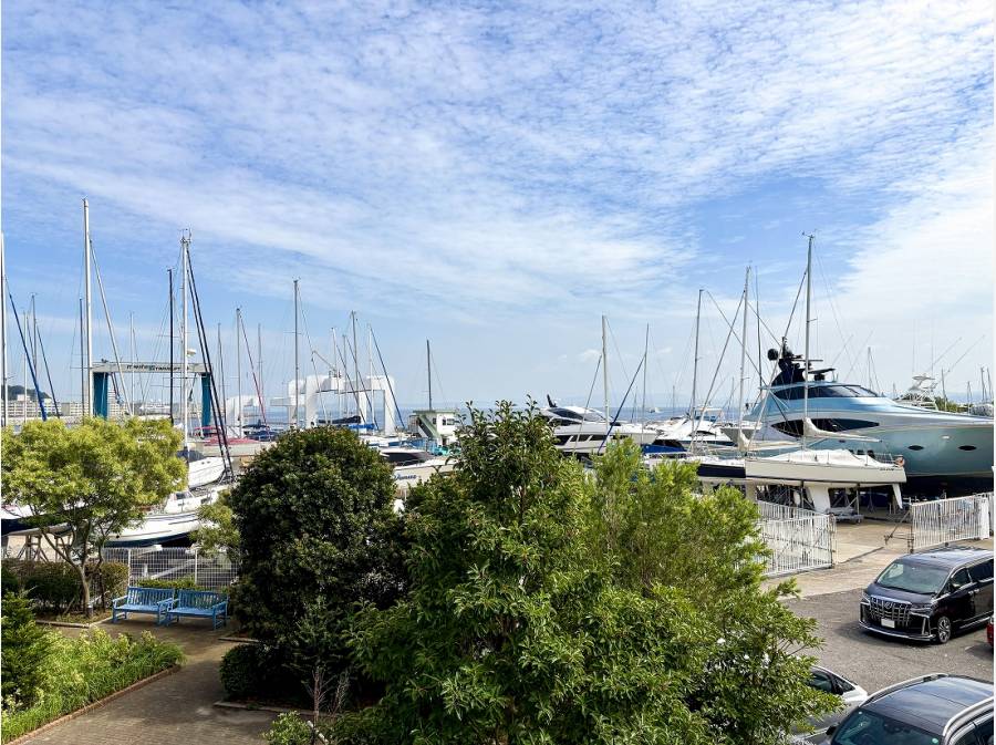 彼方にはフェリーやタンカーの大型船が行き交うパノラミックな眺め。