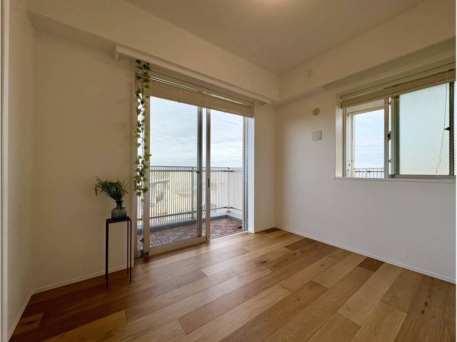 本物件は8階建ての最上階に位置し、角部屋という条件を兼ね備えています。窓が多く、開放的な室内からは三浦半島の山並みや広い空を存分に満喫できます。