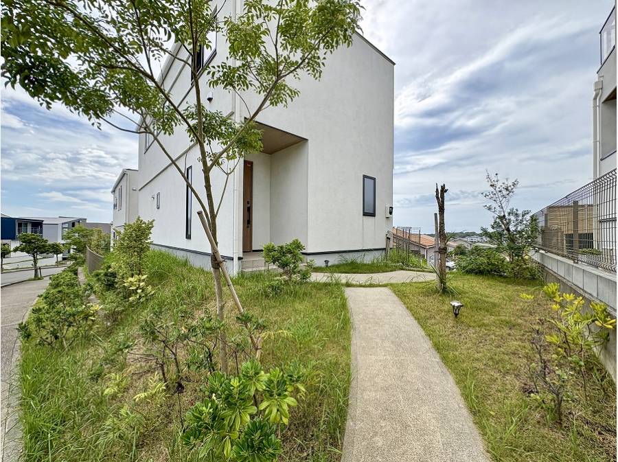 77坪超の広い敷地に佇む白亜のガーデンハウス。