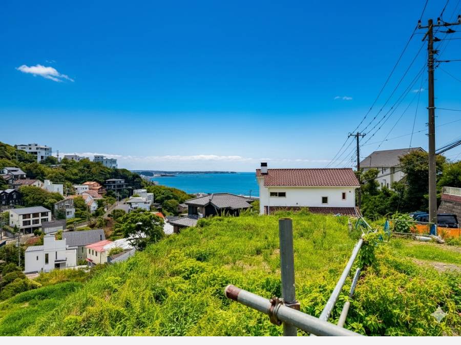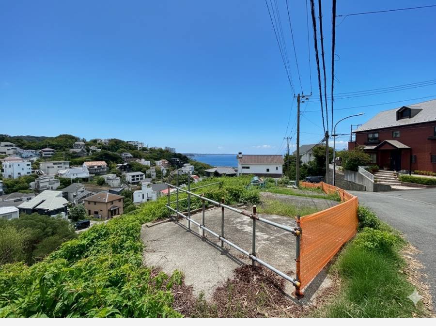 相模湾を見下ろす高台に位置する約232坪の広大な土地。プライベートリゾートに最適です。