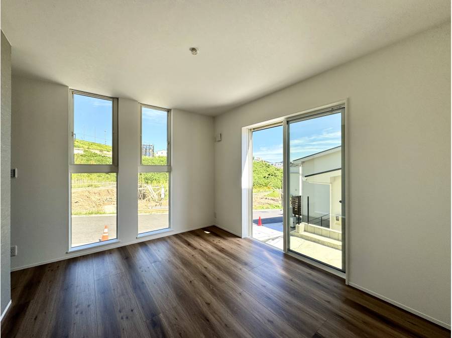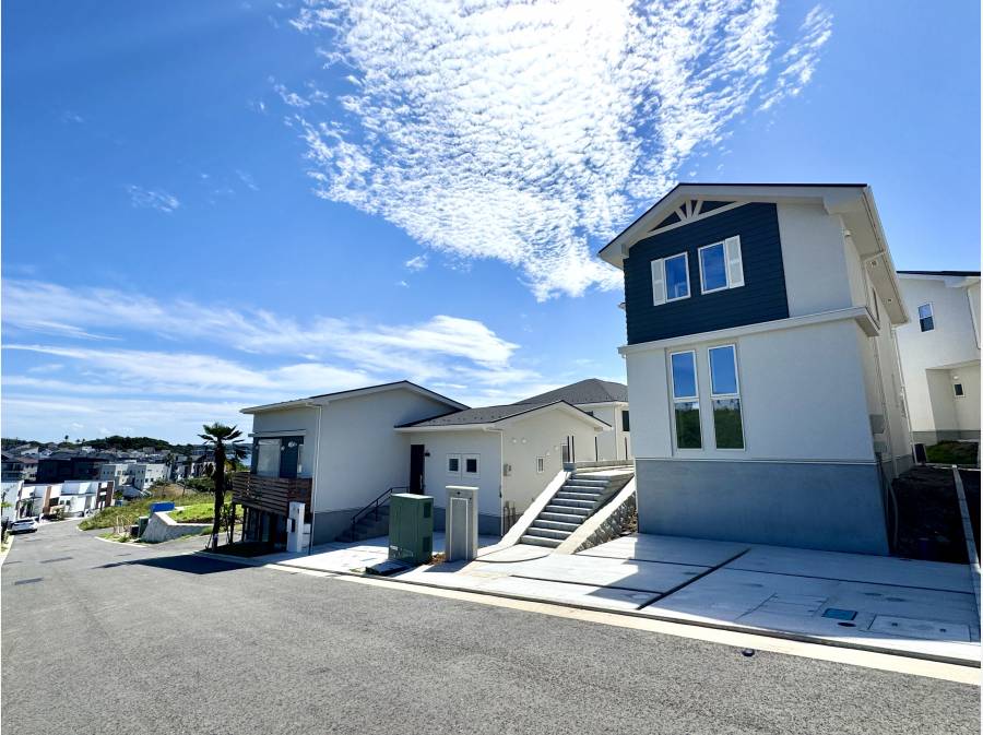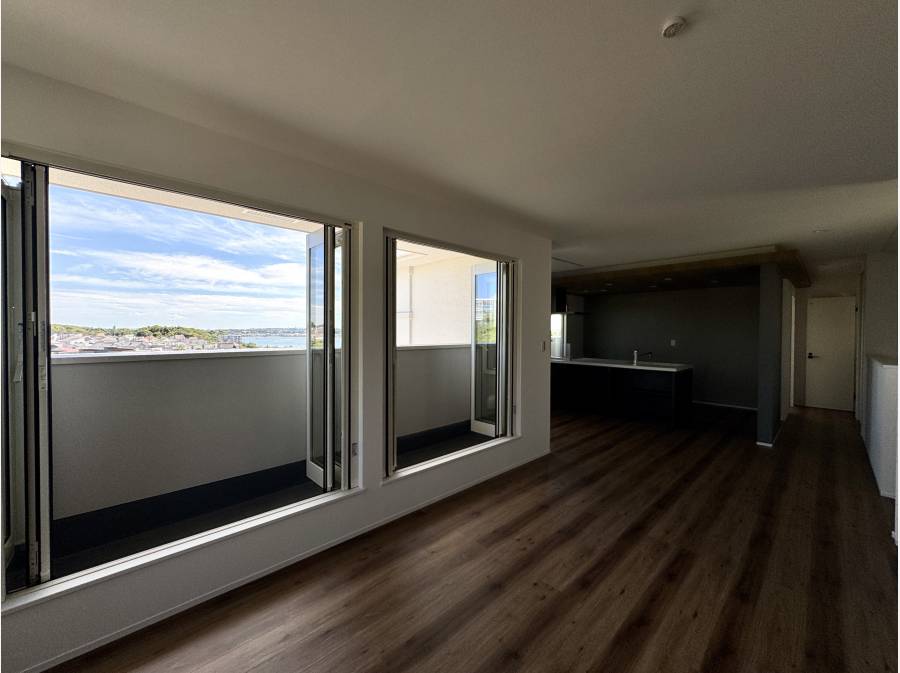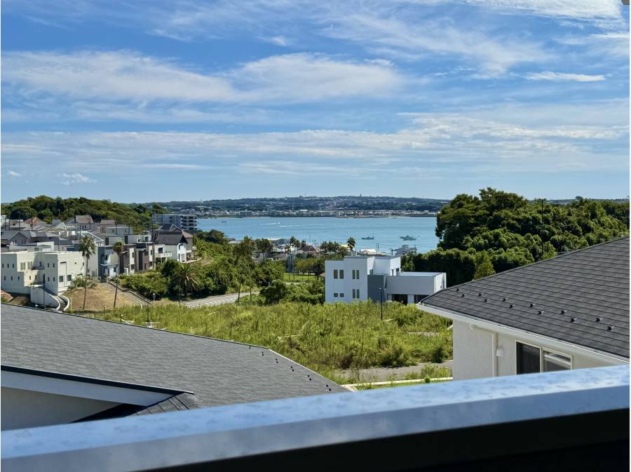 手前区画が平屋ということもあり2階リビングからは海が見えるというサプライズが!