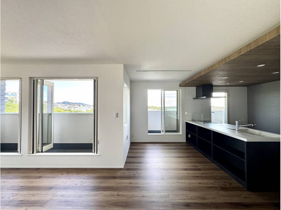 景色をより楽しめるようリビングのメインの窓はフルオープンサッシを採用