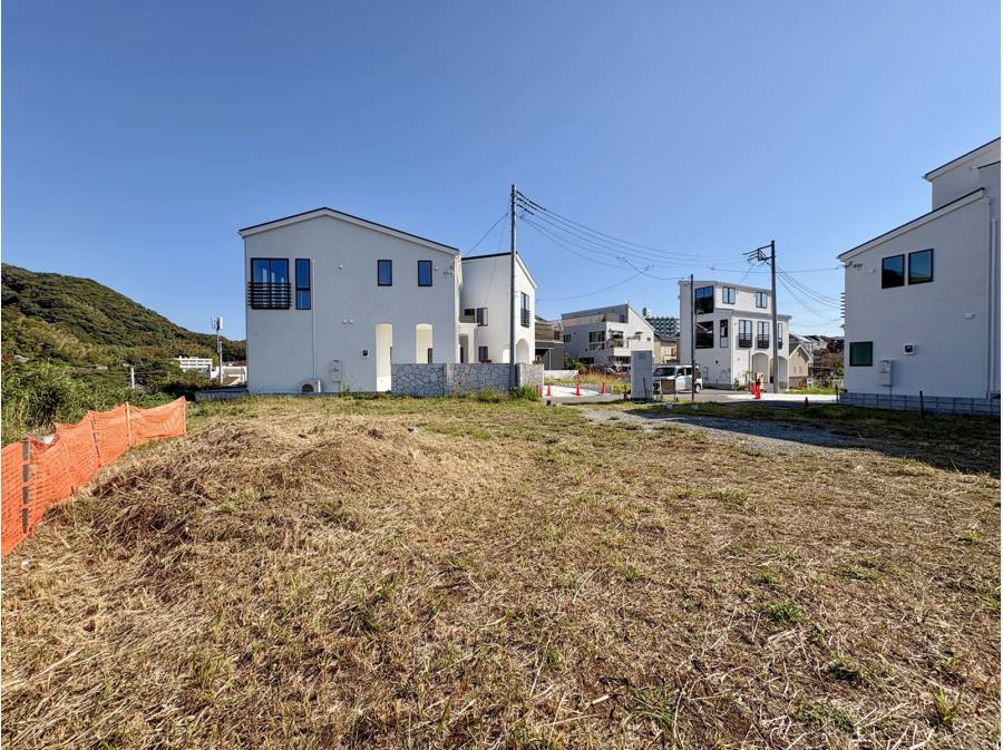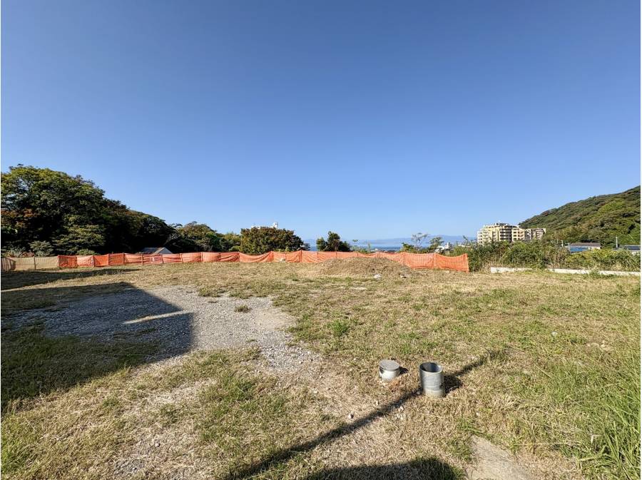 海景に向かって奥へ伸びた地形のため、プランニングの腕が試されそうですね。(建築条件はありません)