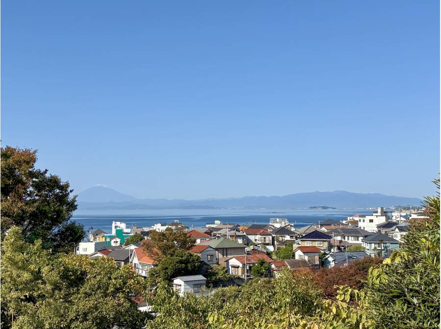 相模湾へと抜ける谷間にはパッチワークのような屋根…このジオラマティックな景色はまさに特等席と呼べるのではないでしょうか。