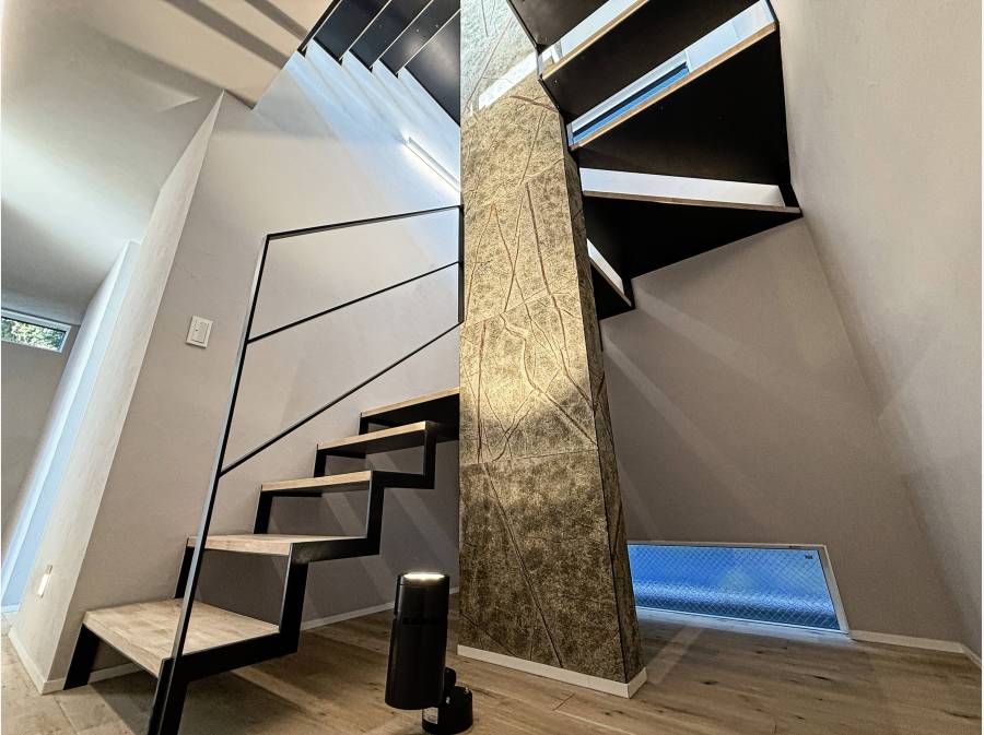 室内は、無垢床材、壁には珪藻土、冬は暖かく、夏は涼しい、24時間全熱交換型の機械式第一種換気システムも採用。