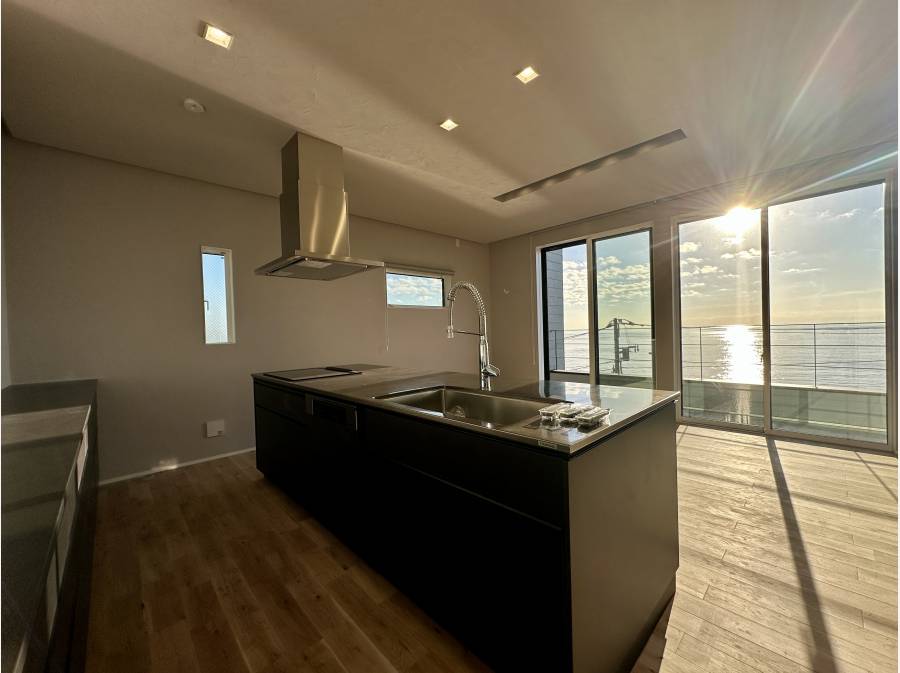 1階から海を望むことができ、2階リビングやルーフバルコニーからの眺望はさらに魅力的です。ぜひ現地でこの眺めをご体感ください。