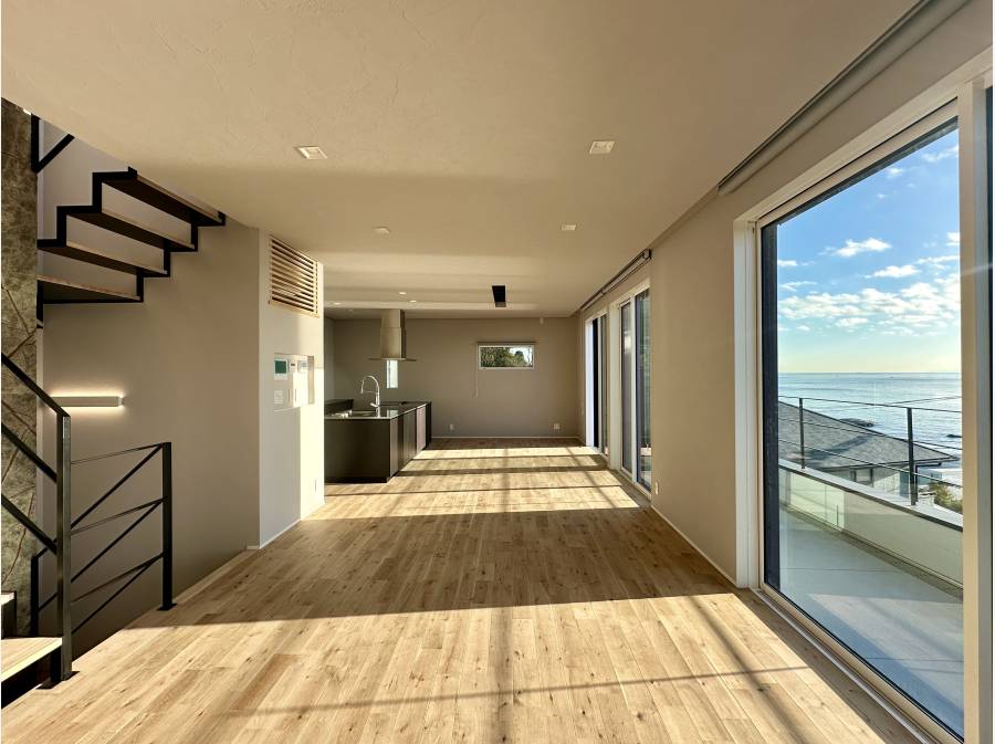 眼下に広がるのは、遮るもののない美しいオーシャンビュー。湘南エリアで多くの海が見える物件を見てきましたが、思わず感嘆の声が出るほどの景色です。