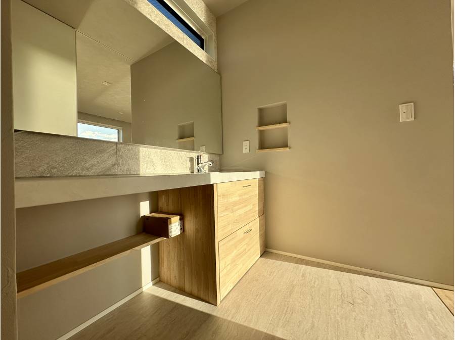 室内にはフルハイドドアを採用し、開放感と明るさを演出。キッチンはクリナップセントロを採用し、食洗器にはミーレを装備。随所に造り手のこだわりを感じさせる仕様です。カースペースは2台分、ゆったり駐車が可能です。