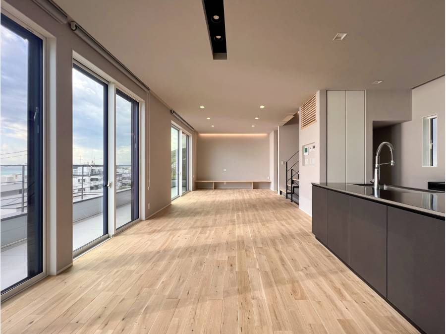 全ての部屋から海を眺められ、キッチンやお風呂でも海を堪能できる贅沢な空間です。
