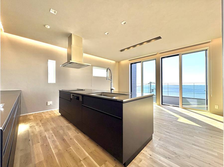 約26.25帖もの広さを誇るLDKは、どこにいてもこの絶景が目に飛び込むよう設計されており、刻一刻と表情を変える空と海のグラデーションが、何物にも代えがたい贅沢な時間をもたらします。