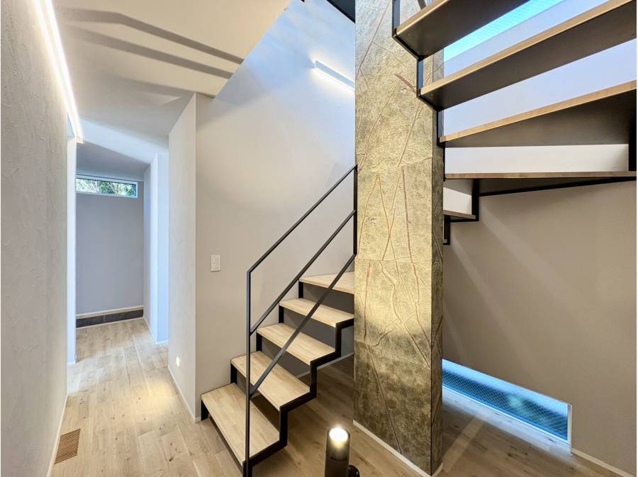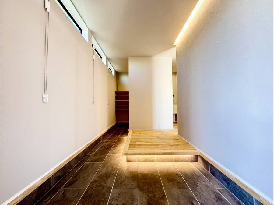 デザイン性だけでなく、玄関スペースやパウダールームも収納が充実している、住み心地の良い家