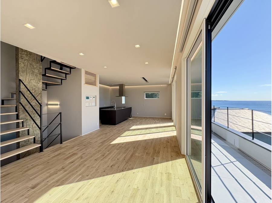さらに約26.25帖の広いLDKやバスルーム、1階の居室からも海が見える、海と共に暮らすリゾートハウス