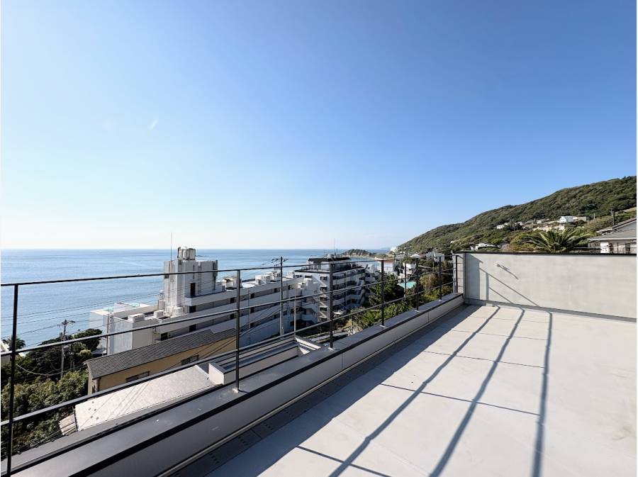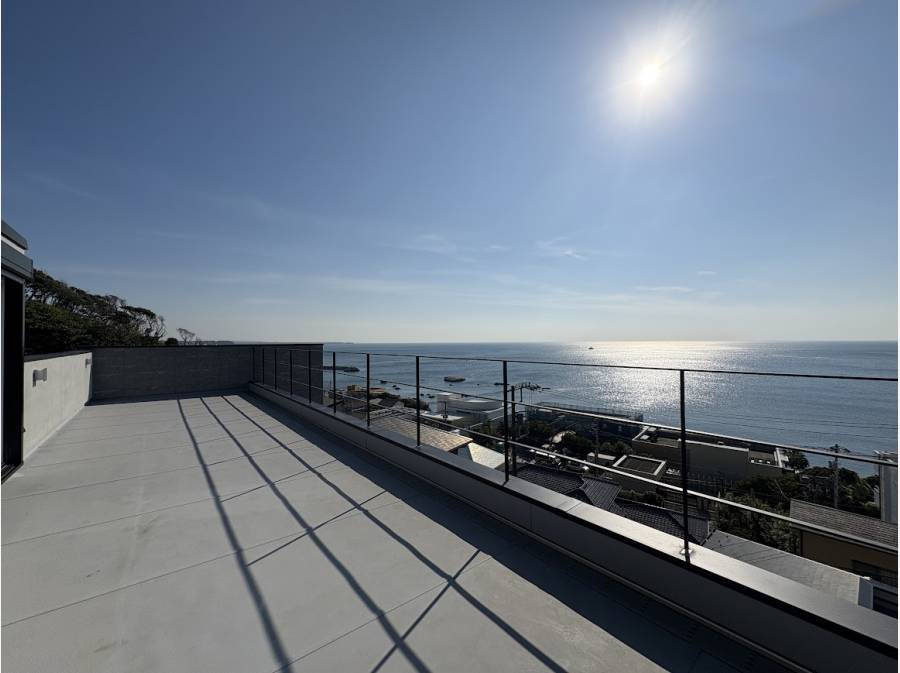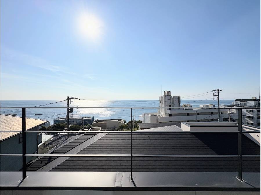 この物件の特徴といえば、なんと言ってもその素晴らしい眺望です。ルーフバルコニーや2階のバルコニーからは、海、江ノ島、そして壮大な富士山を一望できるオーシャンビューが広がります。日常の中にこの非日常的な景色が溶け込む贅沢をご体感ください。