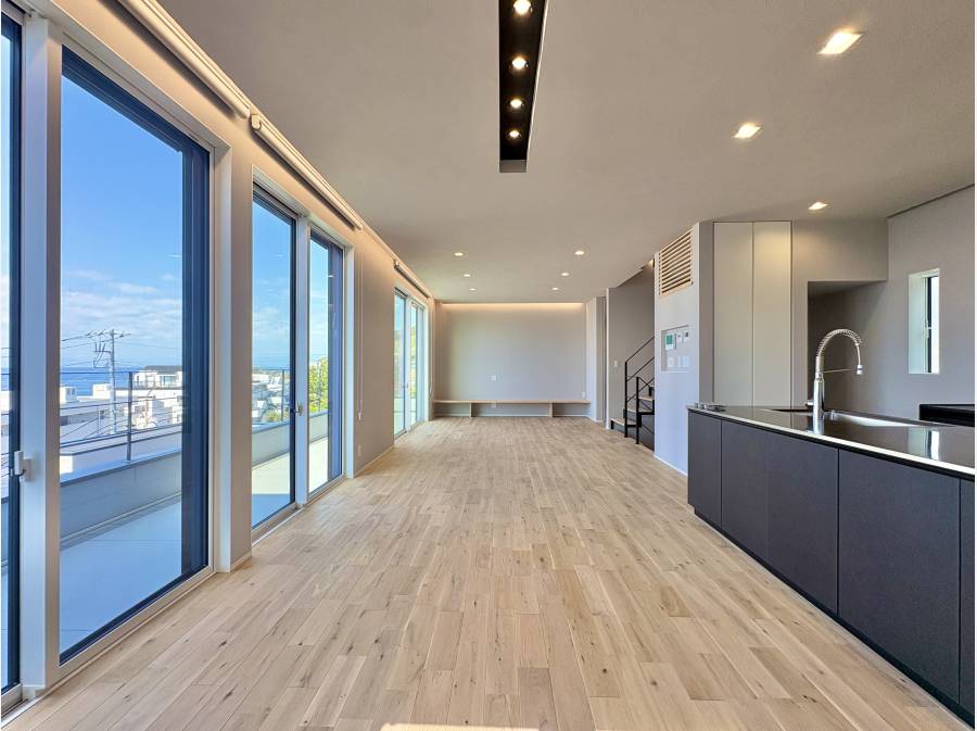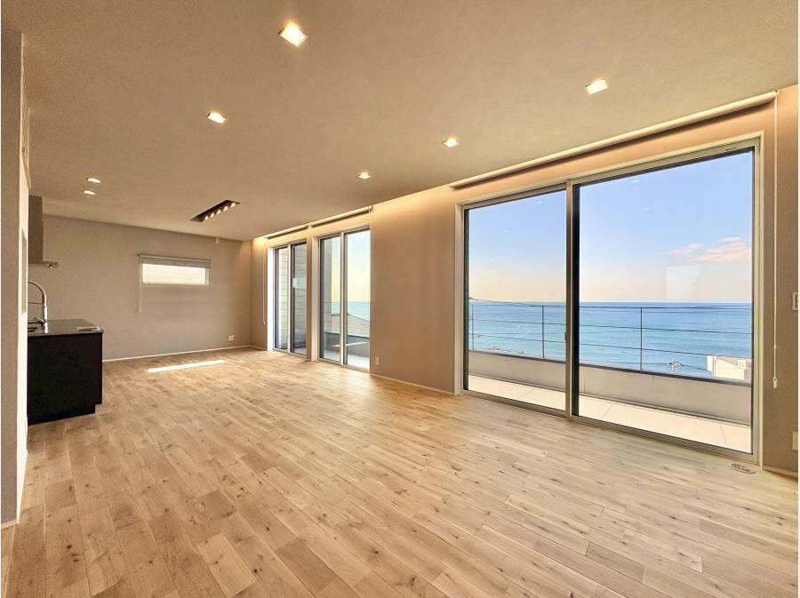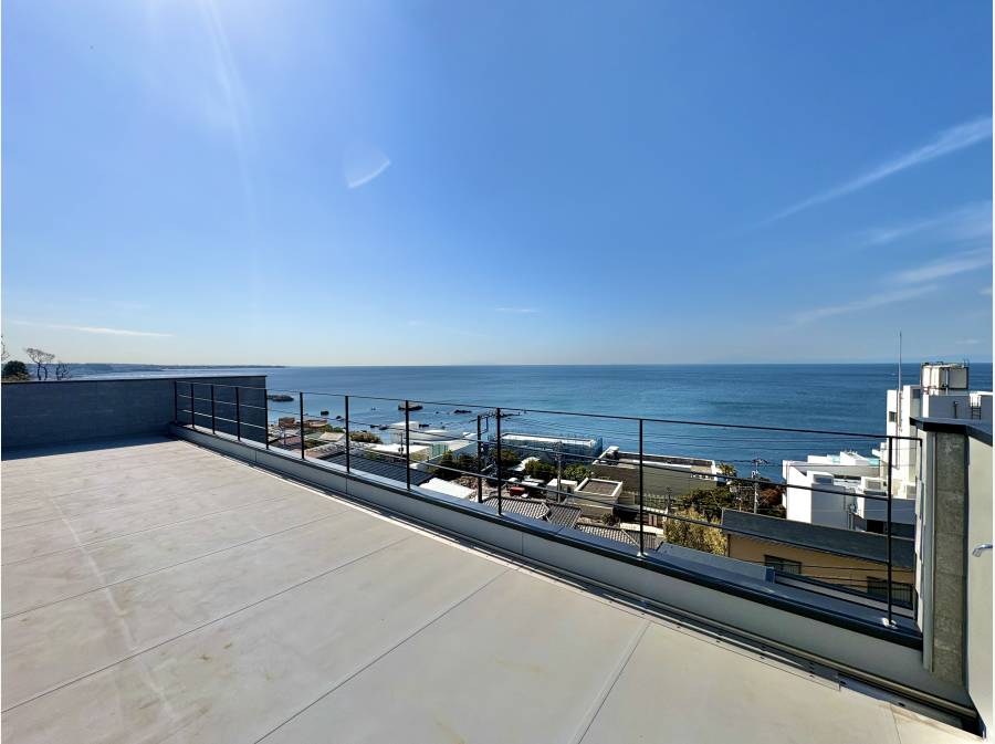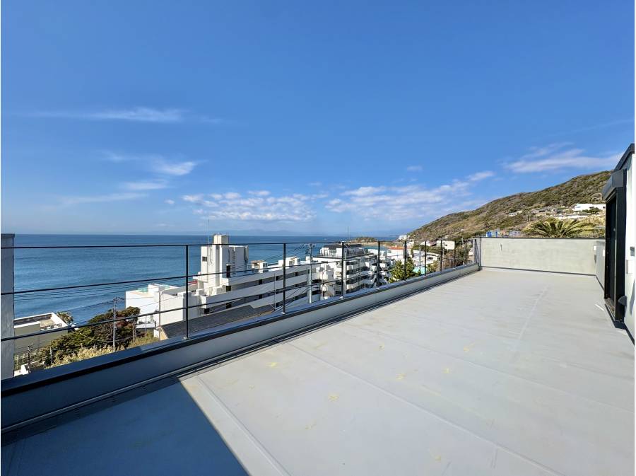敷地面積236.62㎡、建物面積142.83㎡、間取り3LDK、南西側に視線を遮るものがなく、ルーフバルコニーからは太平洋が一望できます。