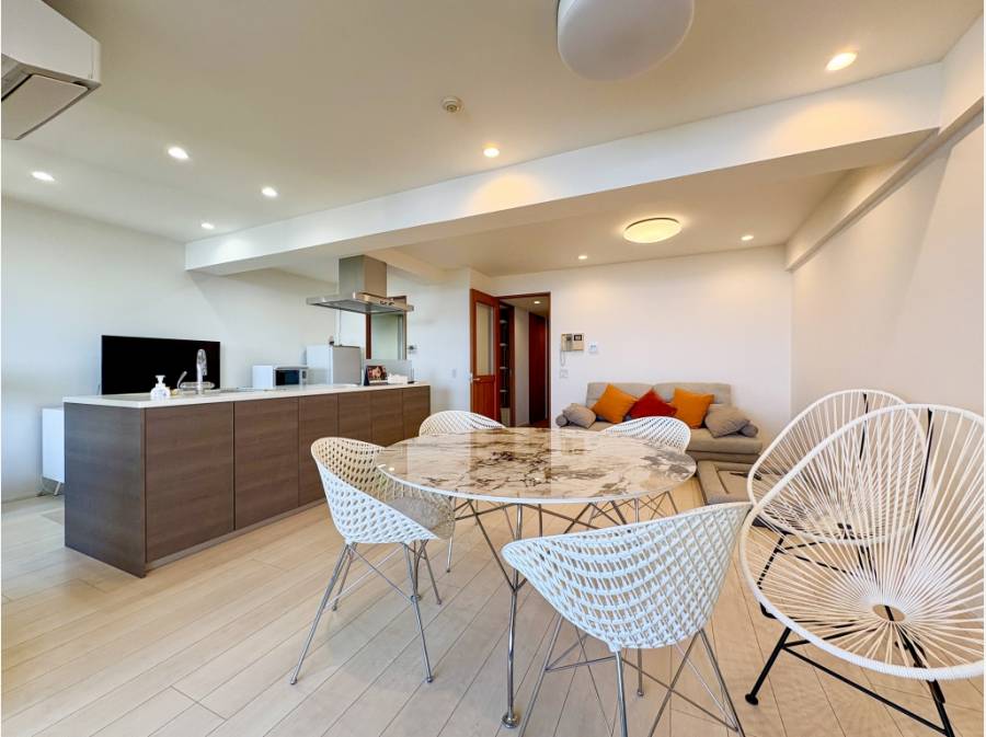 インテリアはオフホワイトを基調に木目の美しいナチュラルカラーを配したカジュアルリゾートテイスト。