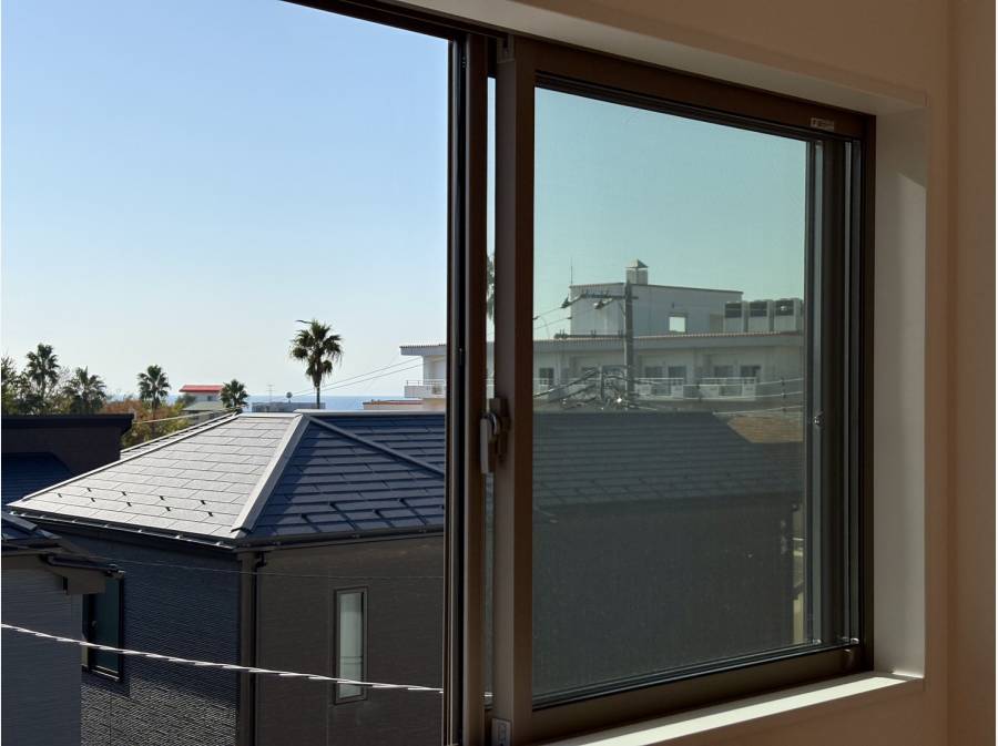 そしてバルコニーと南西側の居室からは、海がチラッと見えました!