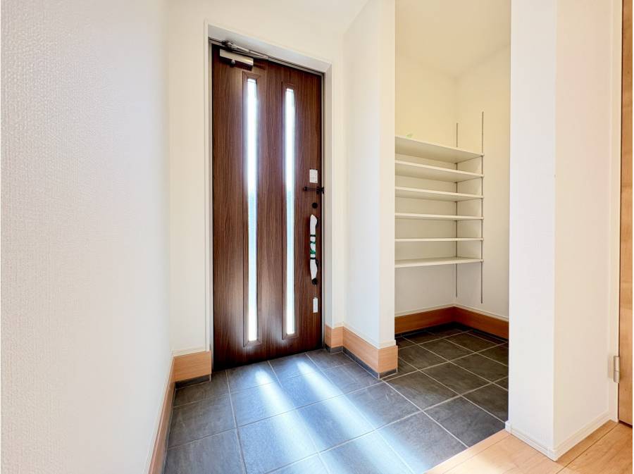 玄関にはシューズインクローゼットがございますので、ご家族のフットウェアやアウトドア用品も収納いただけます