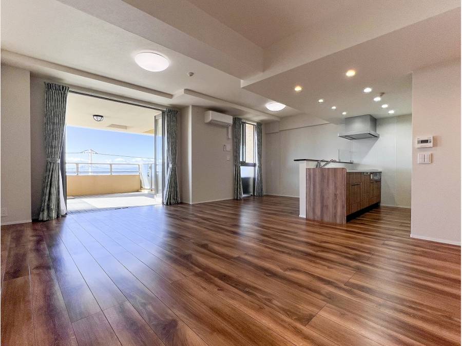 21帖超のLDKには空間に溶け込む開放的なキッチンが備わり、景色と会話を愉しみながらの豊かな時間を満喫できるでしょう。
