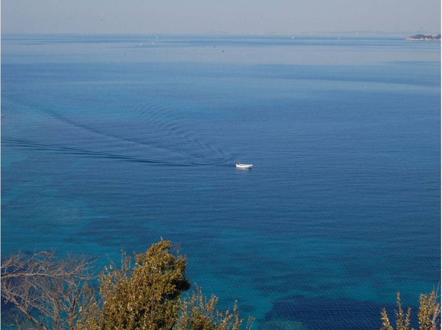 油壷の高台、眼下に広がるのは美しいブルーの油壷湾。