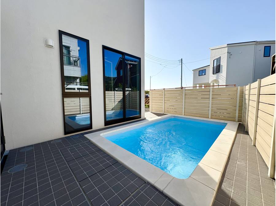 屋外にはプールが備わり、非日常を味わえるプライベートリゾートとしても魅力的です。2LDKの間取りは居住用だけでなく、セカンドハウスや別荘としてもおすすめの設計となっています。