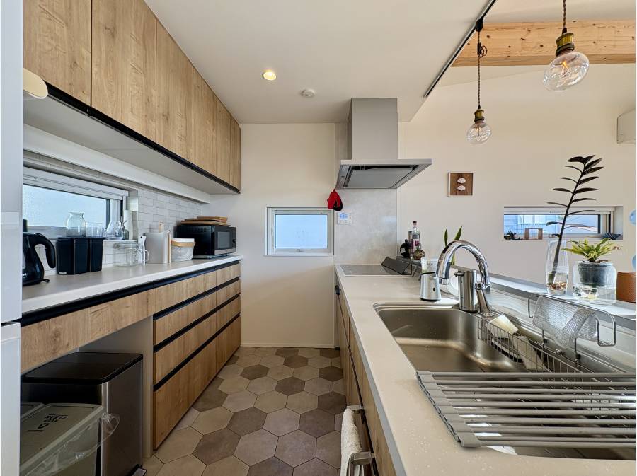 対面式キッチンを採用し、