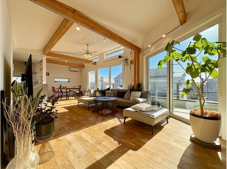 眺めの良い2階には約25帖もの大空間LDKを配置。