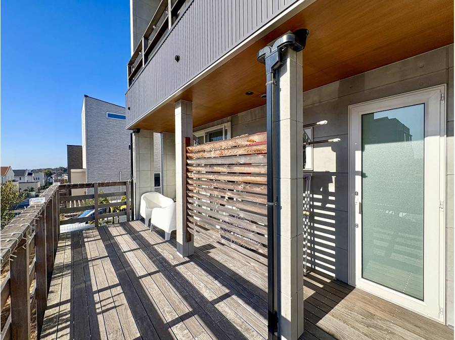 サニタリーと繫がるウッドテラスはマリンスポーツ後に便利です。