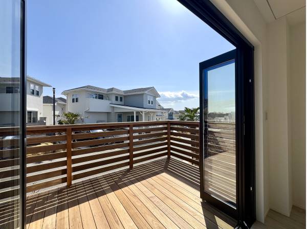 50坪超のゆとりある敷地、バルコニーの先に広がる青い海は、住む人の心に安らぎを与えます。