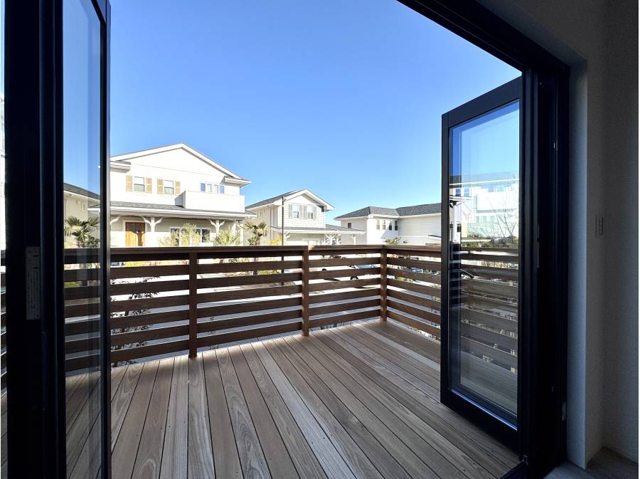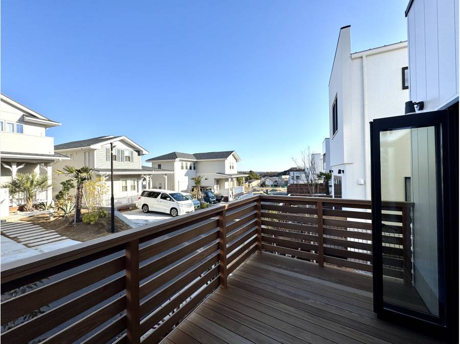 ウッドデッキにつながるリビングやベッドルームからつながるワイドバルコニーなど他にも魅力が詰まっております