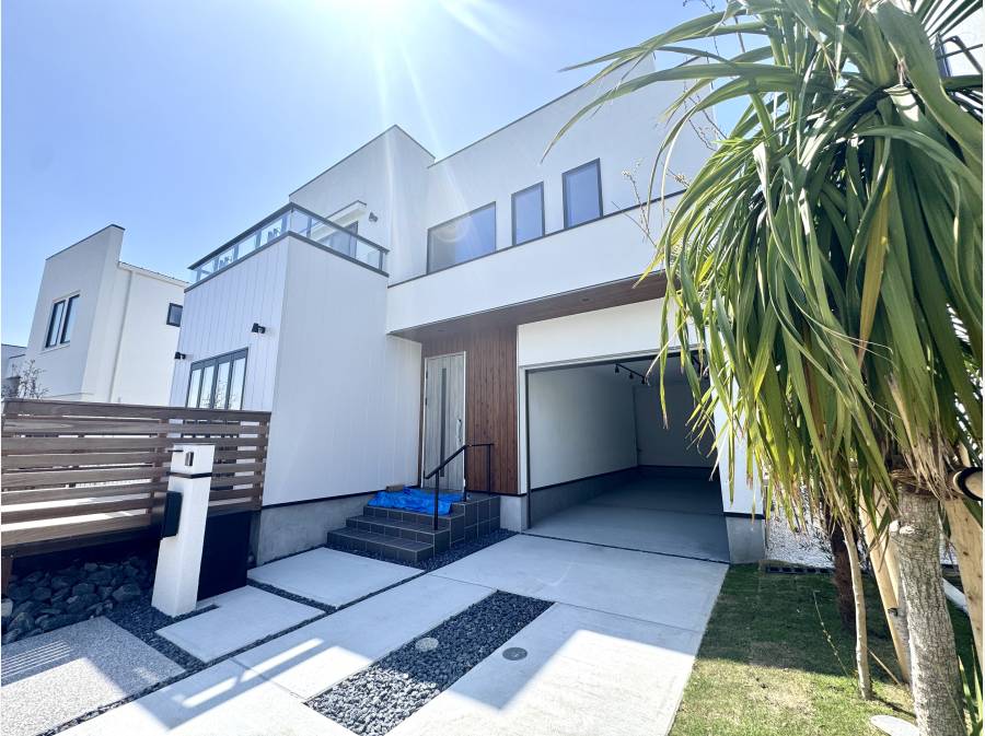 50坪超のゆとりある敷地、バルコニーの先に広がる青い海は、住む人の心に安らぎを与えます。