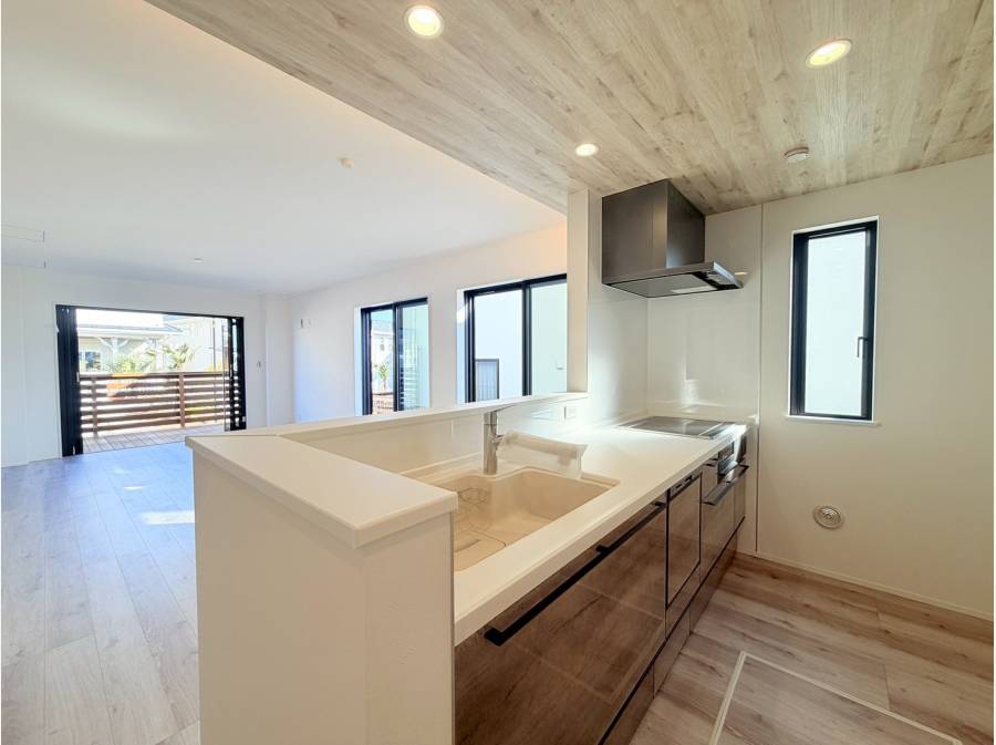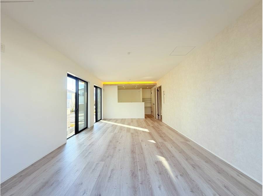 リビングの先にはウッドデッキ風のテラスが広がり、外に出て風を感じる日常を楽しめます。