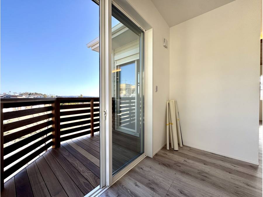 リビングとベッドルームからはウッドデッキテラスへとつながります