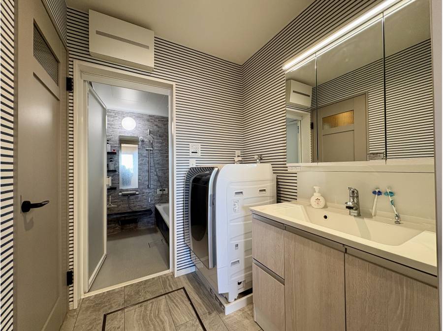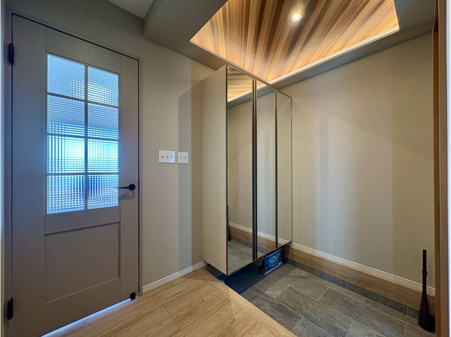 2023年7月に実施されたリフォームでは、外壁と屋根の塗り替え、玄関ドアの交換、全室の壁紙と天井クロスの張り替えが行われました。1階の室内ドアやフローリングの交換、換気乾燥機能付きのバスルーム、シャワートイレ、洗面化粧台、食洗器付きキッチンへの交換も行われています。