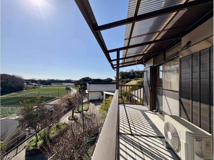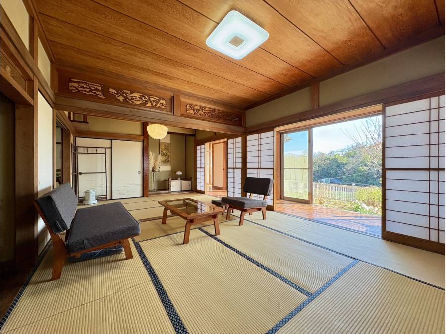 7SLDKの大型中古戸建に加え、倉庫としても活用できる広いシャッター付き車庫、さらに畑スペースも備えたゆとりある敷地です。