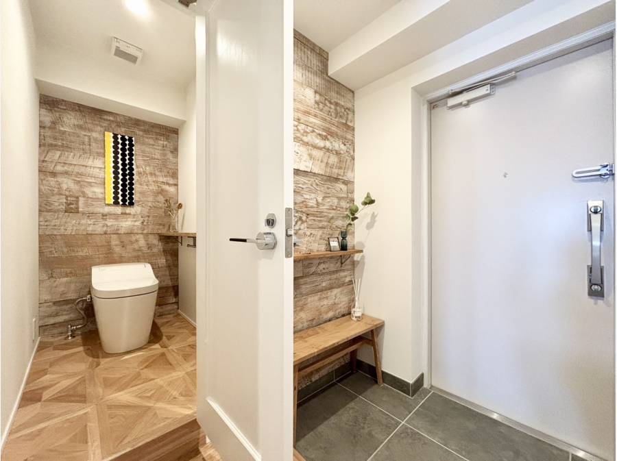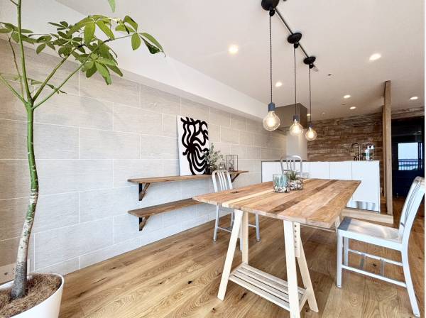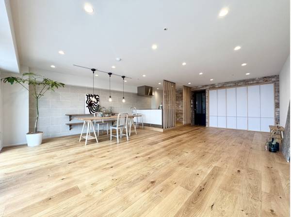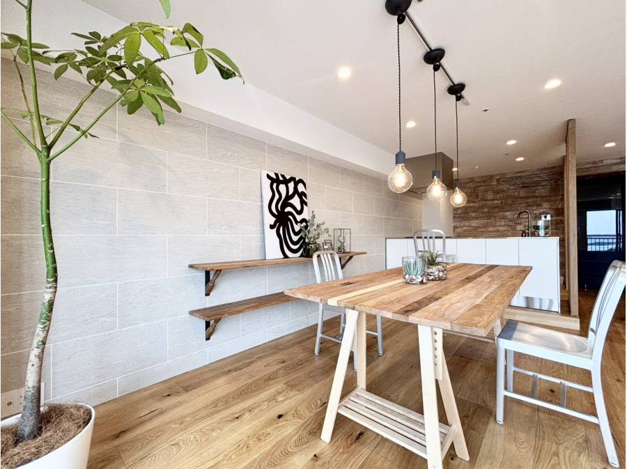 室内はリノベーションが施され、デザイン性と機能性を兼ね備えた洗練された住空間に仕上がっています。キッチンや洗面などの水回りも美しく整えられ、快適な暮らしをサポートします。