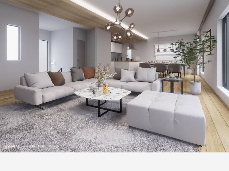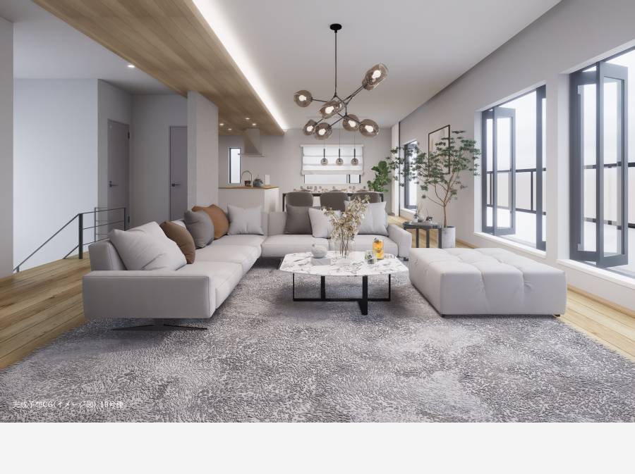 25.6帖の電動シャッター付きガレージや、34.4帖の広々としたLDKなど、こだわりが詰まった住まいです。