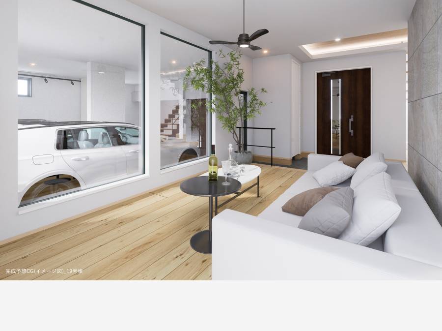 【海を望むガレージハウス】広々34.4帖のLDKと電動シャッター付きガレージで贅沢な暮らしを。