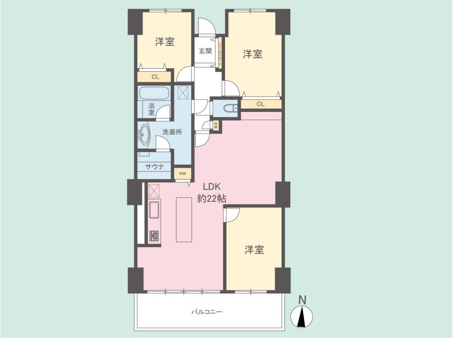 12階という高さがもたらす開放感と、南向きのやわらかな陽だまり。バルコニーの先には海を感じる景色が広がり、日常の中に自然のゆとりが溶け込んでいます。室内はフルリフォームが施され、無垢材のぬくもりが感じられる上質な空間に仕上がっており、約22帖のリビングは家族が自然と集まる中心の場所に。お子様が遊び、ご家族がくつろぎ、それぞれの時間が重なり合う暮らしがイメージできます。