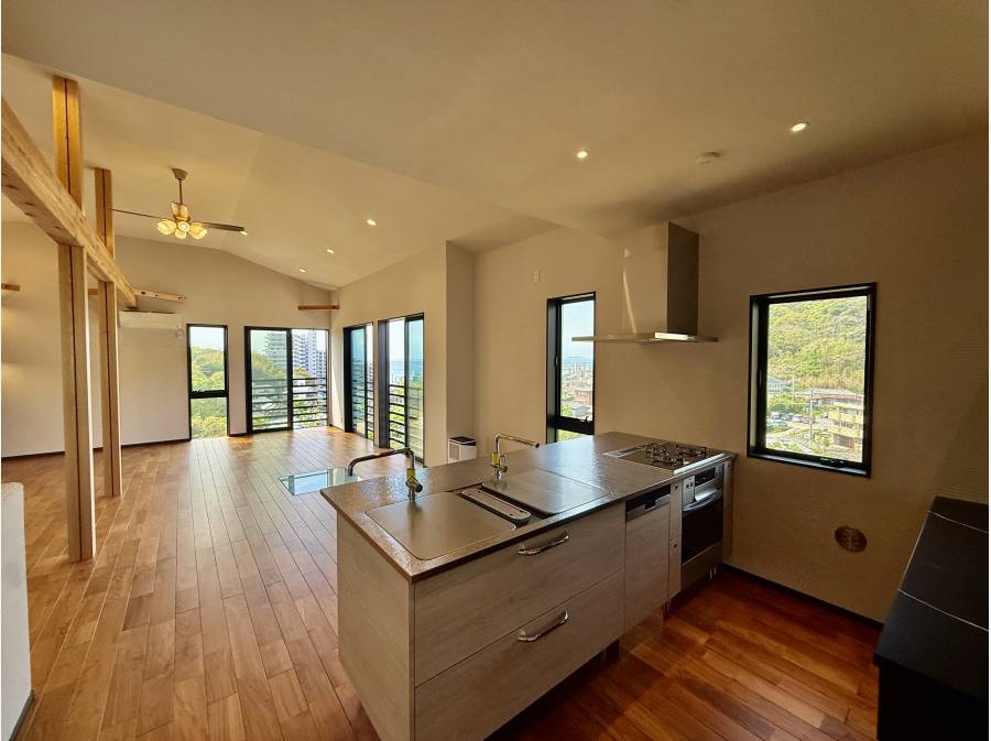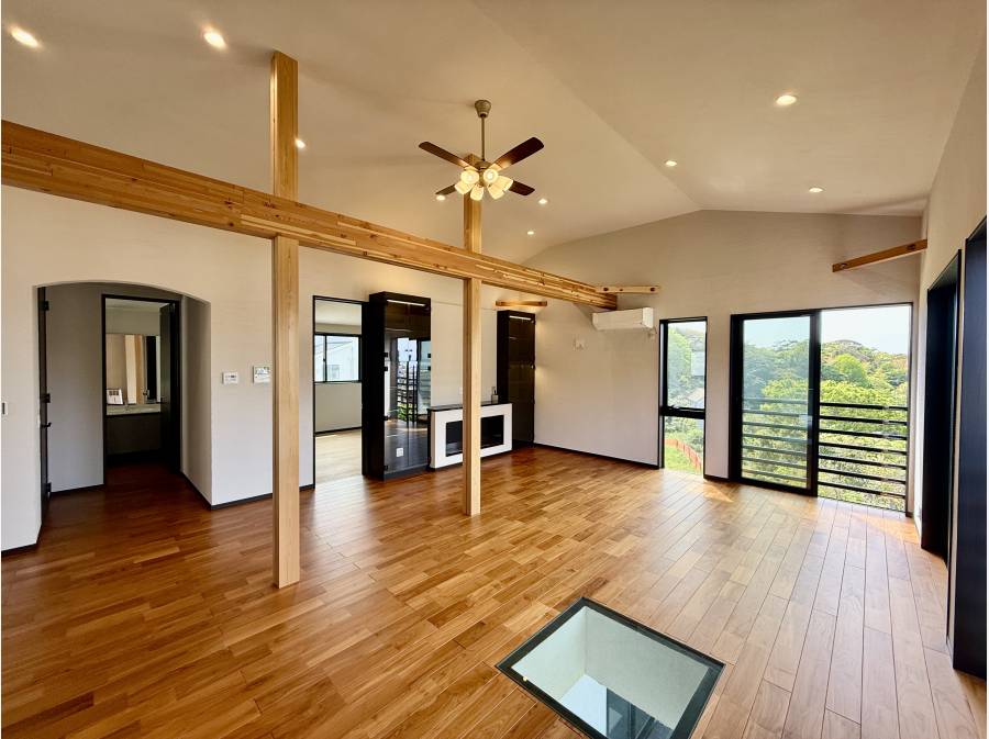 広々30帖のLDKは勾配天井で開放的な空間に。
