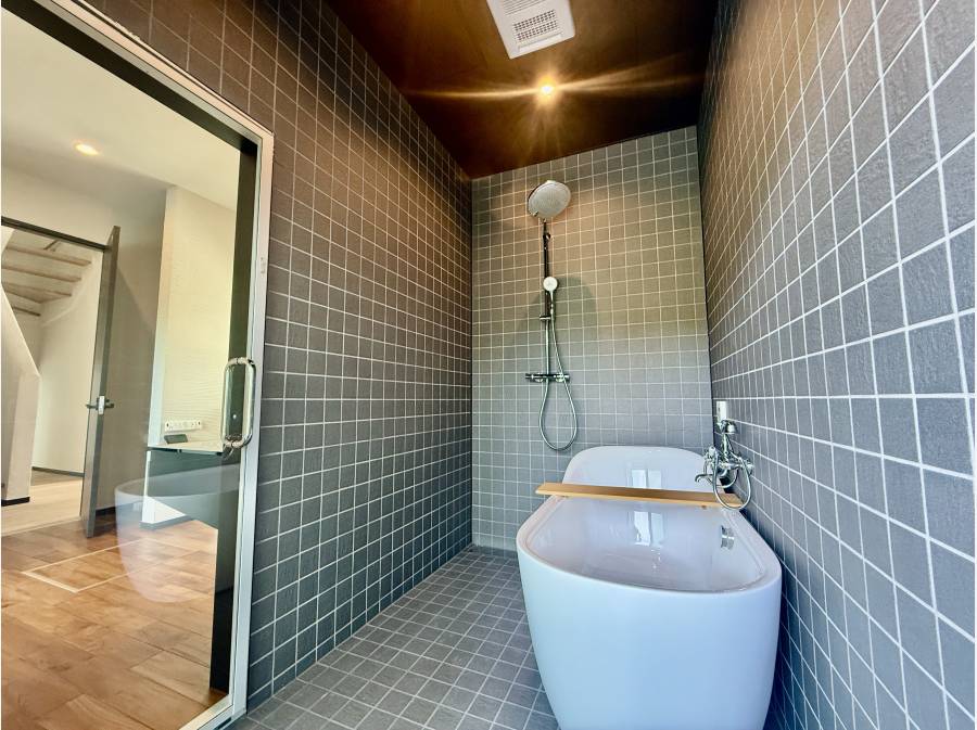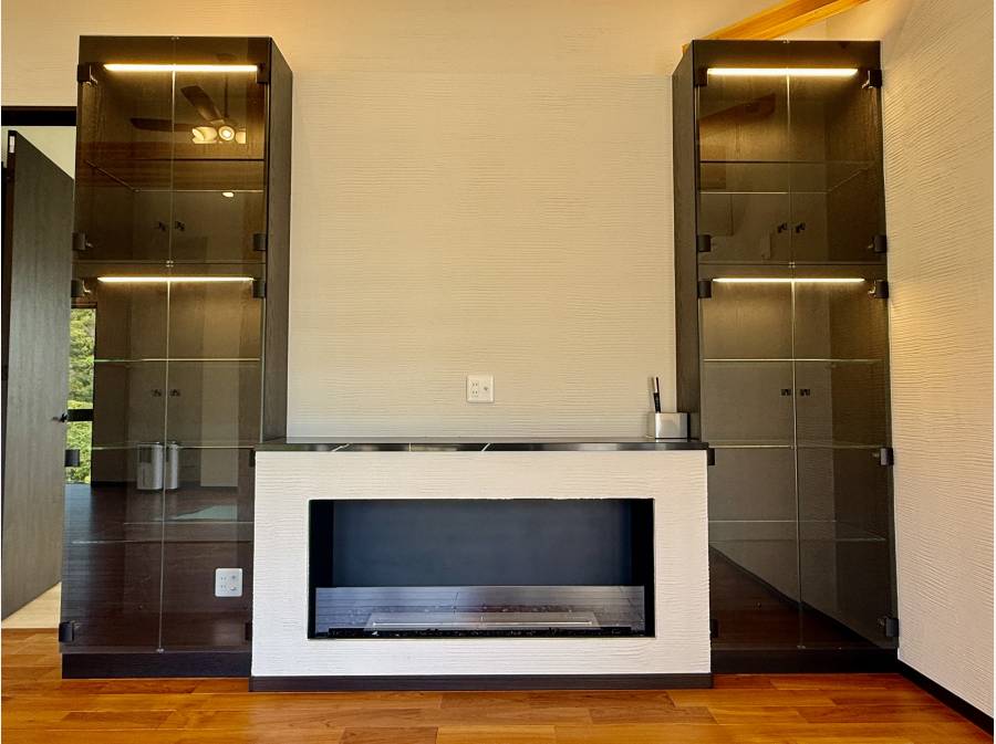 約31帖の広々としたLDKには、揺らめく炎が印象的なバイオエタノール暖炉を設置。機能性と美しさを兼ね備えたキッチンとともに、上質な暮らしを演出します。さらに、ビルトインガレージや充実した収納も備えています。