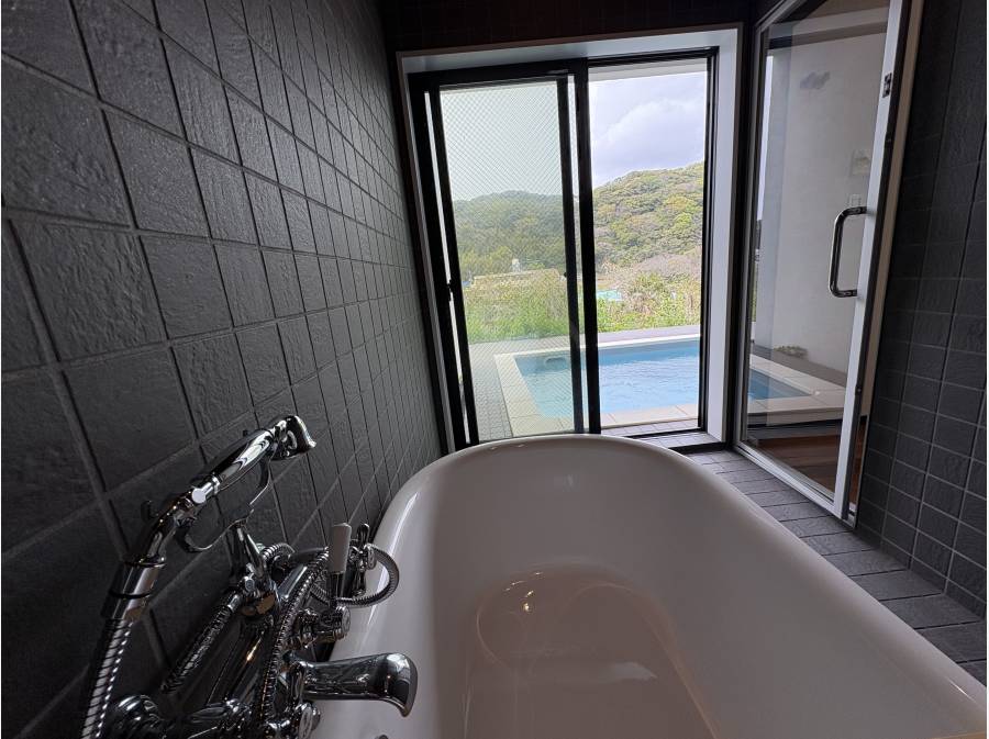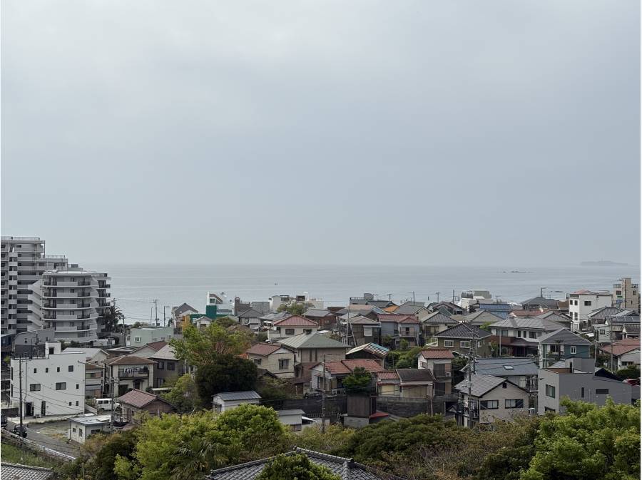 秋谷の高台にある2LDKの邸宅。富士山、江の島、そして海を望む景色と美しい夕日が魅力です。プール付きで、カースペースは2台分確保。バイオエタノール暖炉も備えています。