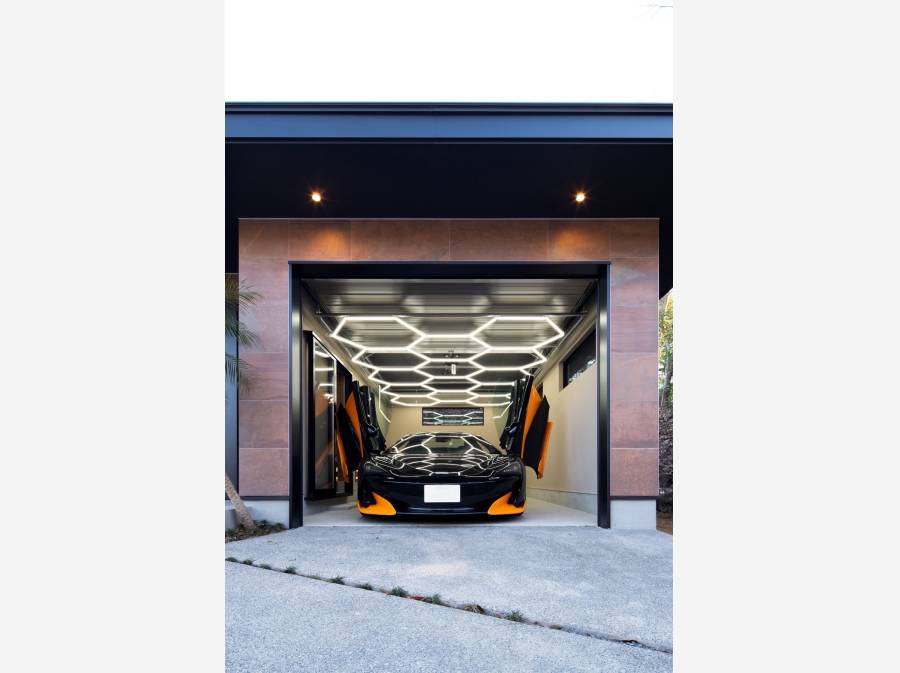 大切な愛車は電動シャッター付きのビルトインガレージ(約14帖)に駐車可能で、さらに来客用に3台分のスペースも用意されています。