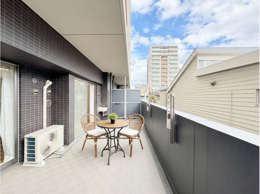 バルコニーも約7帖とゆったり空間、外の空気を浴びながらカフェタイムも良いですね