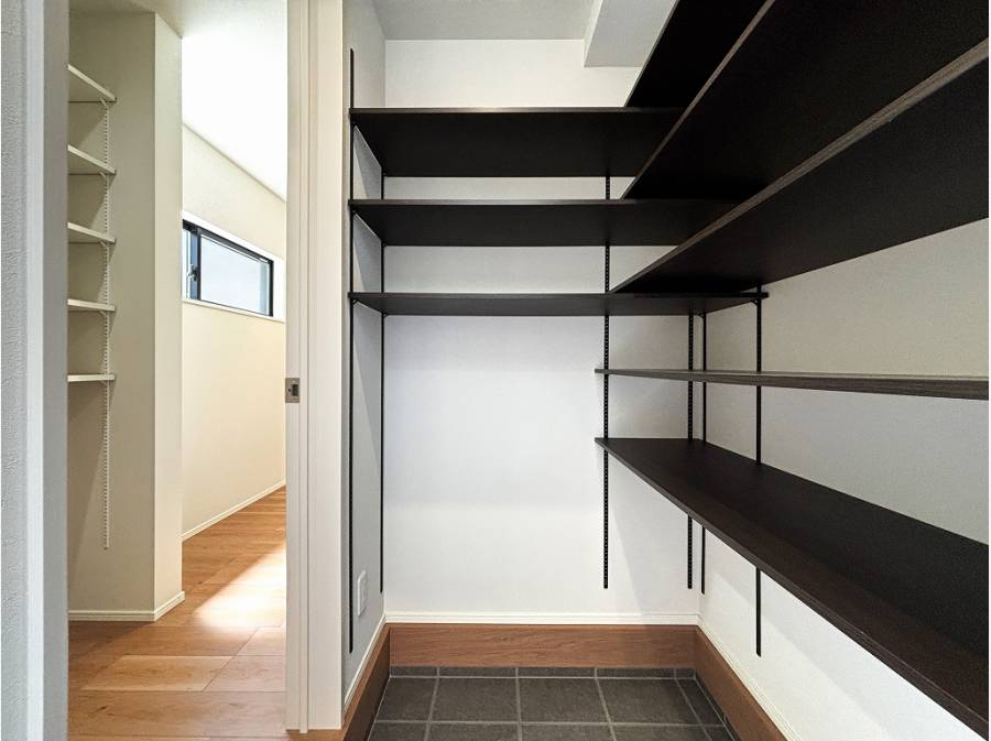 土間収納やパントリーなど、収納も豊富に備えてあります。